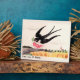 A bird, a Swallow or Martin, flying in a rustic, rural scene carrying a sprig with Bleeding Hearts flowers. By Czech artist Vaclav Fiala. This image was acquired from a Czech telegram dated 1947. Add your own text. Václav Fiala (1896-1980) - Czech painter, graphic artist, illustrator and etcher. Pupil of renowned Czech painter Max Švabinský of the Academy of Fine Arts in Prague, Fiala experimented with the popular art styles of the period. From the 1930's, Fiala favored realism. The main subject of his works were the cultural landscape. In his artistic vision he followed the classical ethnographical studies of Josef Manes. Works by Václav Fiala portray the life and culture of the common people, unaffected by the negative effects of civilisation. His landscapes are portray by rural dwellings, figures of country people and groups of livestock.