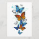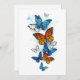 Flying, bright, blue butterfly morpho and orange monarch butterfly on a white background. Morpho. Monarch butterfly. Design with butterflies.
