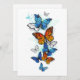 Flying, bright, blue butterfly morpho and orange monarch butterfly on a white background. Morpho. Monarch butterfly. Design with butterflies.