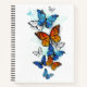 Flying, bright, blue butterfly morpho and orange monarch butterfly on a white background. Morpho. Monarch butterfly. Design with butterflies.