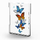 Flying, bright, blue butterfly morpho and orange monarch butterfly on a white background. Morpho. Monarch butterfly. Design with butterflies.
