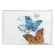 Flying, bright, blue butterfly morpho and orange monarch butterfly on a white background. Morpho. Monarch butterfly. Design with butterflies.
