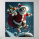 Flying Christmas Cat Santa with Gifts and Magic Poster