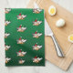The Funny & Cute Flying Pig on a green kitchen towel.