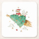 Flying Christmas Tree Santa Cat Square Paper Coaster