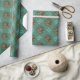 Mallard ducks in flight over a pond reflecting the colours of autumn from nearby foliage. Accented with a matching sea mist blue-green patterned background.
