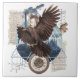 The image of an eagle collage is a fascinating representation that combines different elements and symbols in an artistic composition. In the foreground of this collage is a majestic flying eagle that captures the viewer's attention. The eagle is a symbol of strength, freedom and majesty and could serve here as a central motif that anchors the meaning of the collage.