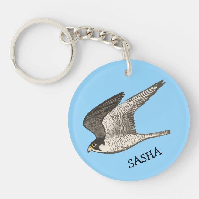 Flying Falcon Coloured Pencil art blue CUSTOM NAME Key Ring