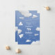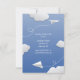 This whimsical party invitation card for a boy's or girl's birthday features various illustrated folded white paper aeroplanes against a blue sky with puffy clouds surrounding your party announcement message - customise with your party details on the front and back - by katz_d_zynes
