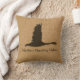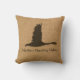 Goose in Flight on a fawn brown textured pillow. One side says Martin's Hunting Cabin. Click to change the name or the words. Reverse side has more flying geese on a caramel brown or peanut coloured textured background. Rustic Woodsy cabin decor.