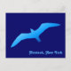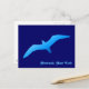 The silhouette (in a brilliant range of blues) of a flying sea gull. Create your own postcard for your scrapbook by changing the town name to what matches your travels.