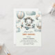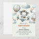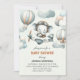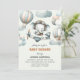 This enchanting baby shower invitation features a whimsical watercolor design of a charming elephant aviator piloting a vintage airplane amidst soft, fluffy clouds and pastel hot air balloons. The playful theme captures a sense of adventure and is perfect for a "Flying High" or "Up, Up and Away" themed celebration for a new arrival. The soft color palette and cute character illustration provide a delightful and welcoming tone for your special event.