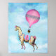 A whimsical, flowered llama takes flight, with the help of a vintage hot air balloon. Great design for a child's room or nursery, or as a baby shower gift!