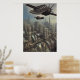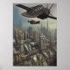 Flying machine over a Dieselpunk ci| AI Art Poster