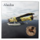 A de Havilland Canada DH3-C Otter, sporting the logo of mythical Flying Moose Aviation of Talkeetna, in flight somewhere over Alaska on an overcast day. Customisable text reading "Alaska" also appears. Also depicted is the leather patch worn by Flying Moose Aviation's bush pilots. It features a winged moose superimposed on a circle with text reading "FLYING MOOSE AVIATION," "TALKEETNA, AK" and "ESTD 1957." The Otter, originally intended to be known as the King Beaver, was conceived as a larger, more capable follow on to highly successful Beaver. The Beaver referred to by de Havilland as a “half-tonne truck;” the Otter would be the “one-tonne truck.” The Otter was used by the military forces of many countries and is also popular in with skydivers; it can be found in many drop zones throughout the world. Flying Moose Aviation: Flightseeing, glacier landings, cargo, hunting and fishing charters. We fly, tell us where you want to go.