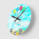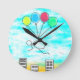 Flying Over The City With Balloons Round Clock
