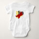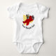 Baby bodysuit with design with an illustration of a penguin flying a red plane; illustrated by Radka Kavalcova / MaxiHarmony