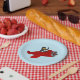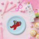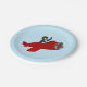 Paper Plate with design with an illustration of a penguin flying a red plane; illustrated by Radka Kavalcova / MaxiHarmony
