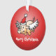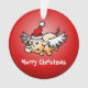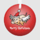 The Flying Christmas Pig on a Acrylic Circle Ornament.