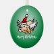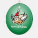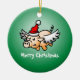 The Flying and cute Christmas Pig on a Round Ceramic Ornament.
