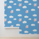 Flying Pig Cute Piglet with Wings on Blue Pattern Wallpaper