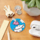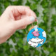 featuring a digital cartoon pink pig with little white wings, dances on clouds embellished with hearts up in the bright blue sky.