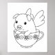 Flying Pig in a Teacup Colouring Page Poster