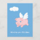Vector illustration of an adorable flying pig with angel-like wings. The message reads: "Missing you PIG time"