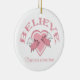 These adorable ornaments feature two cute pigs with wings flying over a pink and white heart under the word "believe". The ornament reads "Dreams come true" (this text can be replaced). Add your own message to the back or delete the text and keep the back blank.
