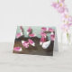 Colourful Card Featuring A Photo Painting Of Flying Pink And White Tulip Petals Above A TableTop. Original Photography by Lianne K. Coleman