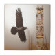 Flying Raven & Totem-Pole Fantasy Art Ceramic Tile