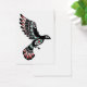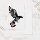 This unique design features a Haida inspired flaying bird. The Native pattern depicts a tribal bird design that is comprised of flowing lines and elegant shapes. The birds wings flow up the side of the pattern with its tail hanging down below. A small fish appears in a circle inside the birds stomach. This beautiful pattern is a stylish representation of this wonderful flying creature.