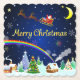 Beautiful snowscapes with Christmas trees, houses, a snow man, and a rainbow over the snow falling from the sky. Santa Claus flying over the Crescent moon on Christmas night.