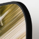 An abstract image capturing the graceful flight of seagulls in a mesmerising golden setting, where the background is blurred and reflective, creating an ethereal atmosphere. The warm hues of gold and amber blend seamlessly, casting a soothing aura that invites a sense of tranquillity and serenity. Such a design is perfect for enhancing the ambiance of a space, transforming it into a haven of relaxation and peace with a touch of nature and elegance that evokes the soothing essence of a coastal retreat.