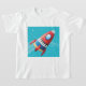 Dreaming of flying through space in a spaceship. Well then this design will answer that dream. It is off a colourful spaceship that is zipping through space. The rocket is is multicolored and has a vapour trail out the back. It is set against a blue background. This flying spaceship design looks great on this girls t-shirt. Perfect for yourself or as a gift