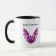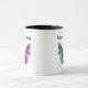 This coffee or tea mug has two spooky furry bats with open wings in flight.  One is vibrant pink the other is vibrant green.  Customise your text with the template.