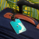 I was happy with the acrylic tag but it came with a thin leather strap to attach the tag to luggage (like a cat collar). I replaced the strap with a metal ring off of a key ring as the leather strap would come undone or break easily as luggage is sometimes handled without much care by airlines. Printing is great. Colours and positioning of the design I put on the tag were perfect. Very pleased.
