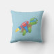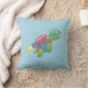 Flying Turtle with a Red Jetpack Blue Throw Pillow