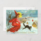 Flying Witch Black Cat Owl Bat Snow Postcard