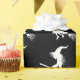 A spooky witch flying on a broomstick accents this wrapping paper, making it perfect for a Halloween gift.