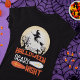 Celebrate the spookiest night of the year with this eerie Halloween design! Featuring a flying witch, haunted graveyard, and creepy coffins under a glowing full moon — it’s perfect for October parties, trick-or-treating, or scary season vibes.
