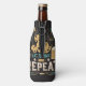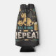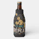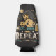 Imagine a foam bottle cooler adorned with a playful yet straightforward mantra: "Eat, drink, and repeat." These words are boldly written in a stylish font, standing out against the cooler's background. Surrounding the text is a lively illustration depicting a frothy beer mug and a smouldering cigarette, each representing indulgence and relaxation.