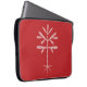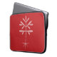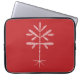 Neoprene foam laptop sleeve in Simon's Rock red with a white chevron sapling on each side.