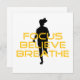 A silhouette female runner with yellow modern style text that reads Focus Believe Breathe on sports and athletic gear including bags, T-shirts, tank tops, mugs, cards, stickers, and more, great for anyone who is a distance runner, runs marathons, just loves running in general. A great motivational and inspirational running design.