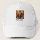 A bright white Trucker's Hat featuring a serene angel with radiant gold wings exudes positivity and grace. The angel’s elegant pose and detailed wings shimmer with a golden glow, symbolising hope, protection, and uplifting energy.