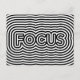 Minimalist black and white lines optical illusion with a word “Focus”. An awesome gift for people who have problem for focusing on something. It not helps, but look good, especially if you like op art. Dark background with white illustration.