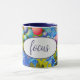 Contemporary colourful quilt pattern with oval frame and FOCUS text.