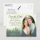 Foggy Green Pine Trees Oval Photo Save The Date Announcement Postcard