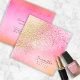 This stylish makeup artist's business card features an angled abstract background that sparkles in shades of gold through peach and watermelon. Add name, title or tagline on the front and contact details on the reverse side. A chic and professional choice for any beauty, fashion or style-related business. Shown here in a modern square business card size. Search ID775 to see other size, colour options and professions with this glam background pattern.