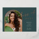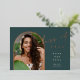 An elegant graduation announcement design with a unique layout, this chic card features a vertical photo in an arched shape on a rich jungle green background, with "Class of 2022" in rose gold foil hand lettered script typography. Personalise with your graduate's name and school, and add a personal message to the back, along with an additional photo. A stunning design in a lush colour palette for announcing your special milestone.